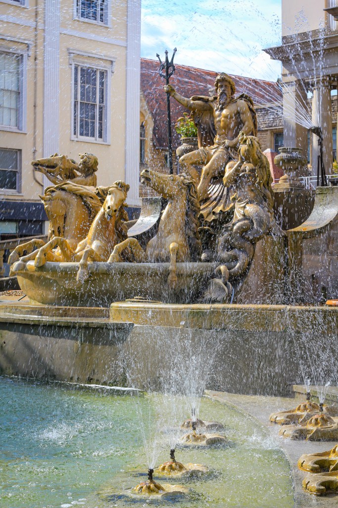 The statue adds to Cheltenham’s spa town charm, reminiscent of the internationally famous (due to its world heritage site status) city of Bath. It depicts Greek God Neptune at the centre, high above all the other statues, holding the trident with a conch-blowing merman on each side. At his feet are the four hippocamps, half horse and fish, rearing dramatically. It’s a spectacular sculpture that never ceases to draw attention on The Prom.